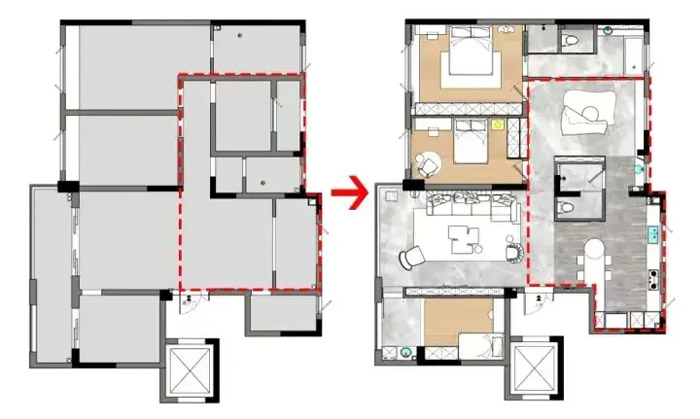 总结一下,家装设计对动线进行改造优化,是为了让不同的空间及功能使用更便捷和方便,以提高操作效率和舒适度,降低运动损耗和时间成本。