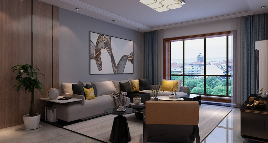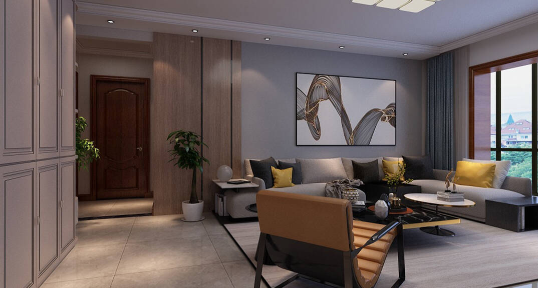 悦海地3室2厅100平美式风格装修入户门和客厅