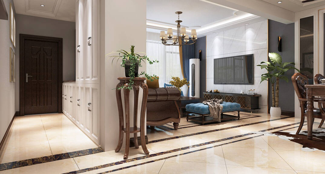 青岛小镇220m²别墅入户走廊及客厅美式风格装修案例效果图