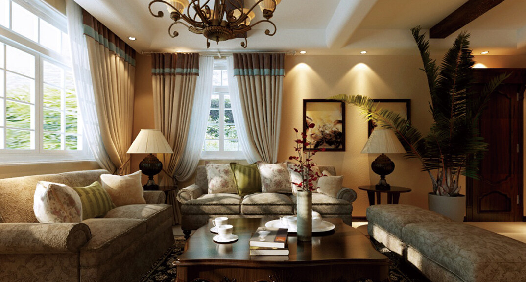 泓久花园212㎡别墅客厅沙发美式风格装修案例