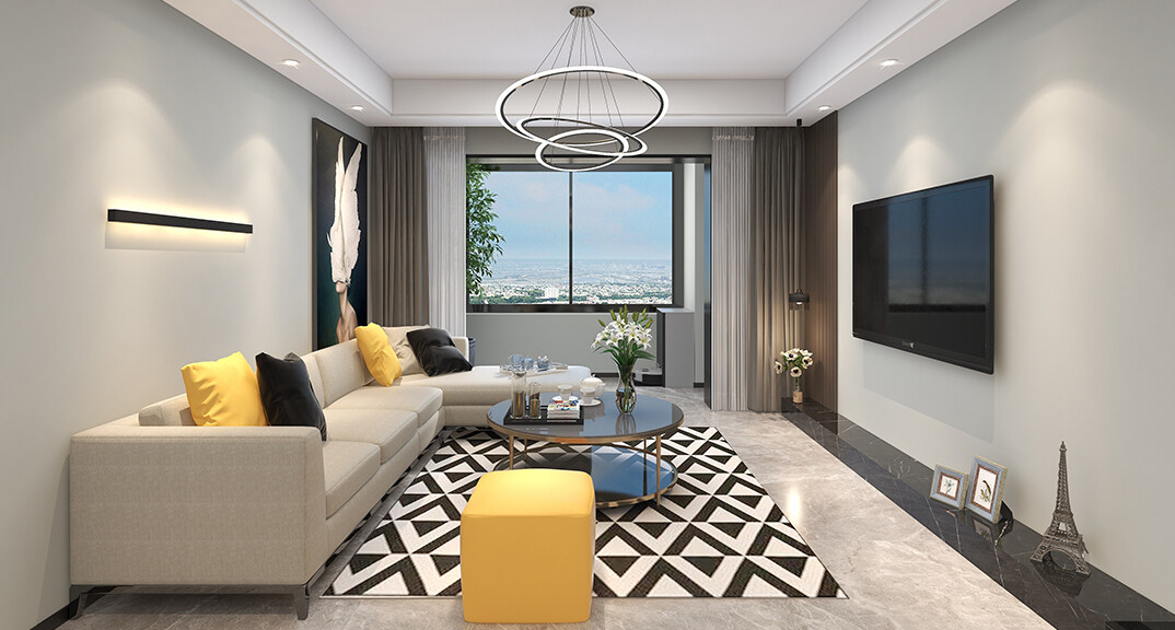 旭辉银盛泰·博观御品125㎡三室一厅客厅现代简约风格装修案例效果图