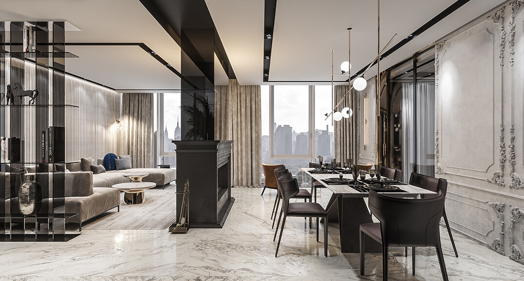 鑫江合院185㎡叠墅客餐厅现代风格装修案例效果图