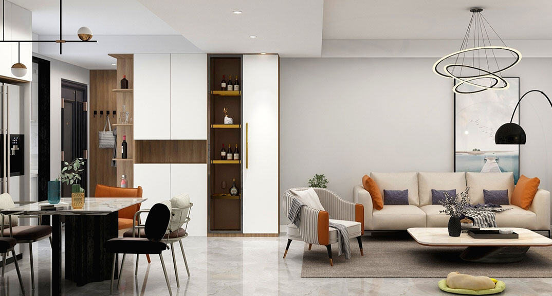 阳光上城118㎡三室两厅客餐厅沙发现代极简风格装修案例效果图