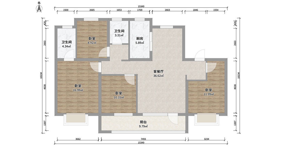 依云四季138㎡四室两厅厨房美式轻奢风格户型研发案例效果图