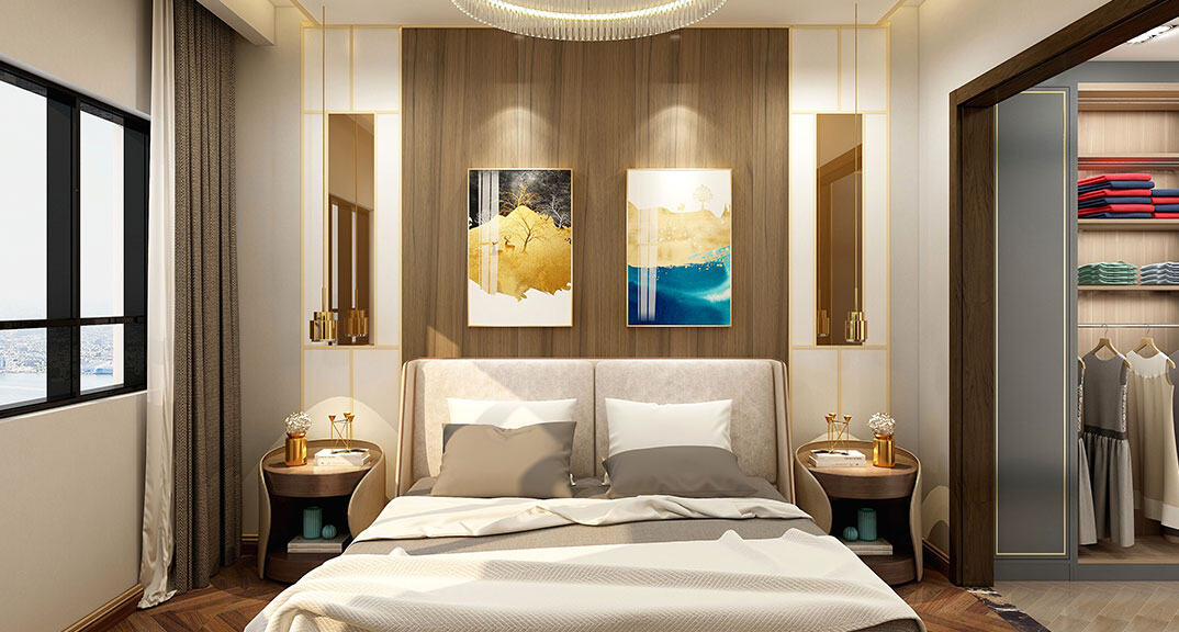 依云四季138㎡四室两厅卧室美式轻奢风格户型研发案例效果图