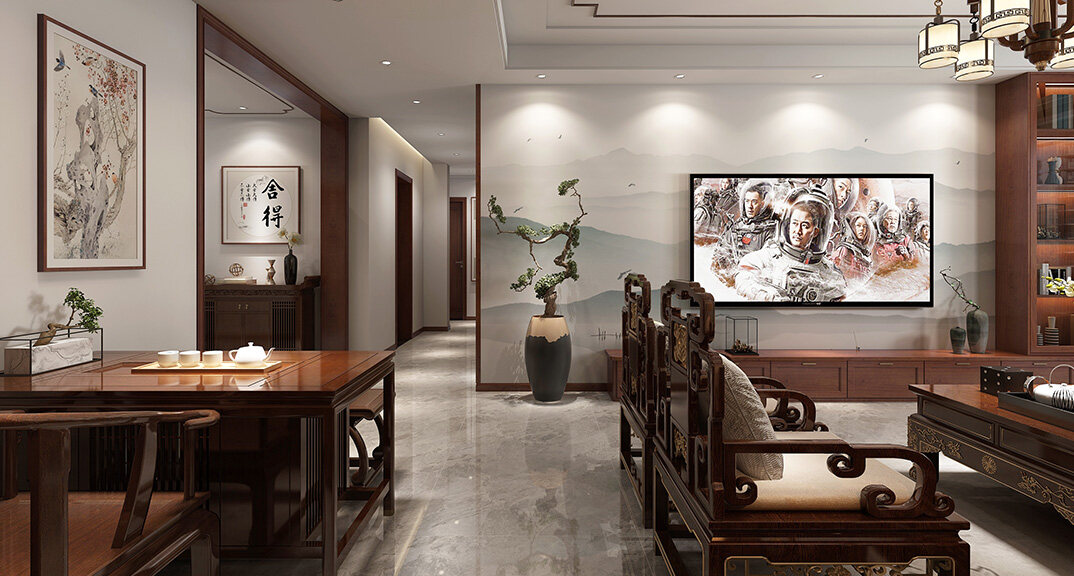沙子口建港小区150㎡三室两厅茶室中式风格装修案例效果图
