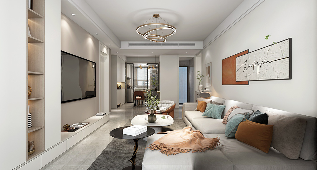 海青公寓200㎡三室两厅客厅现代简约风格装修案例效果图