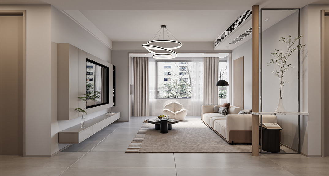 大连花园128㎡三室两厅客厅现代简约风格装修案例效果图